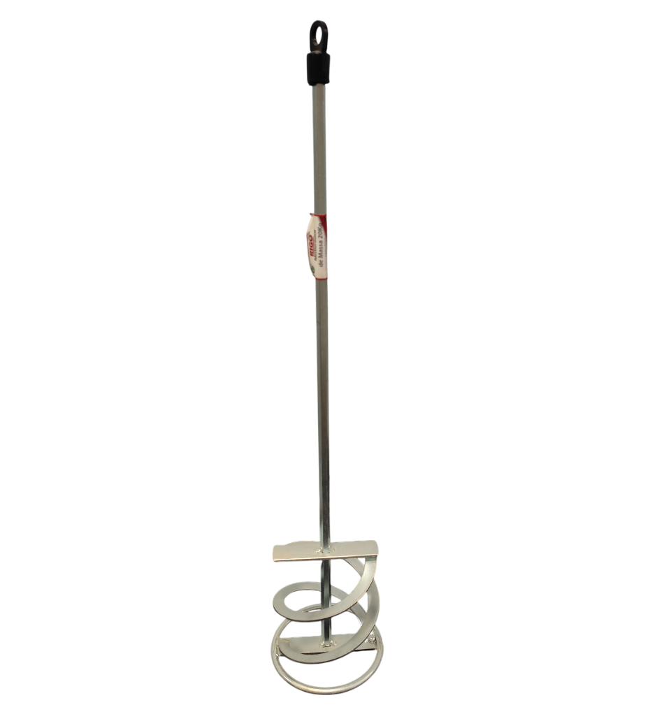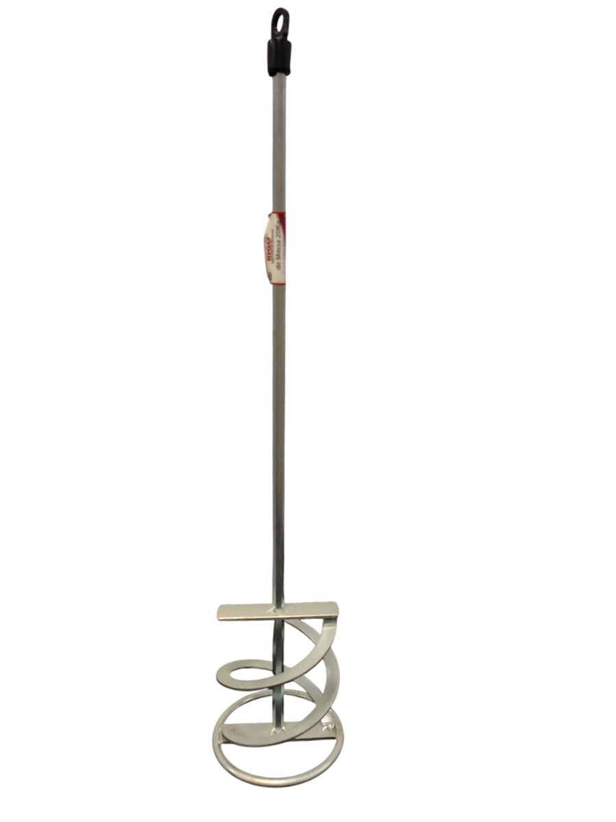 Feito em Metal com ponta em espiral que facilita a mistura das massas