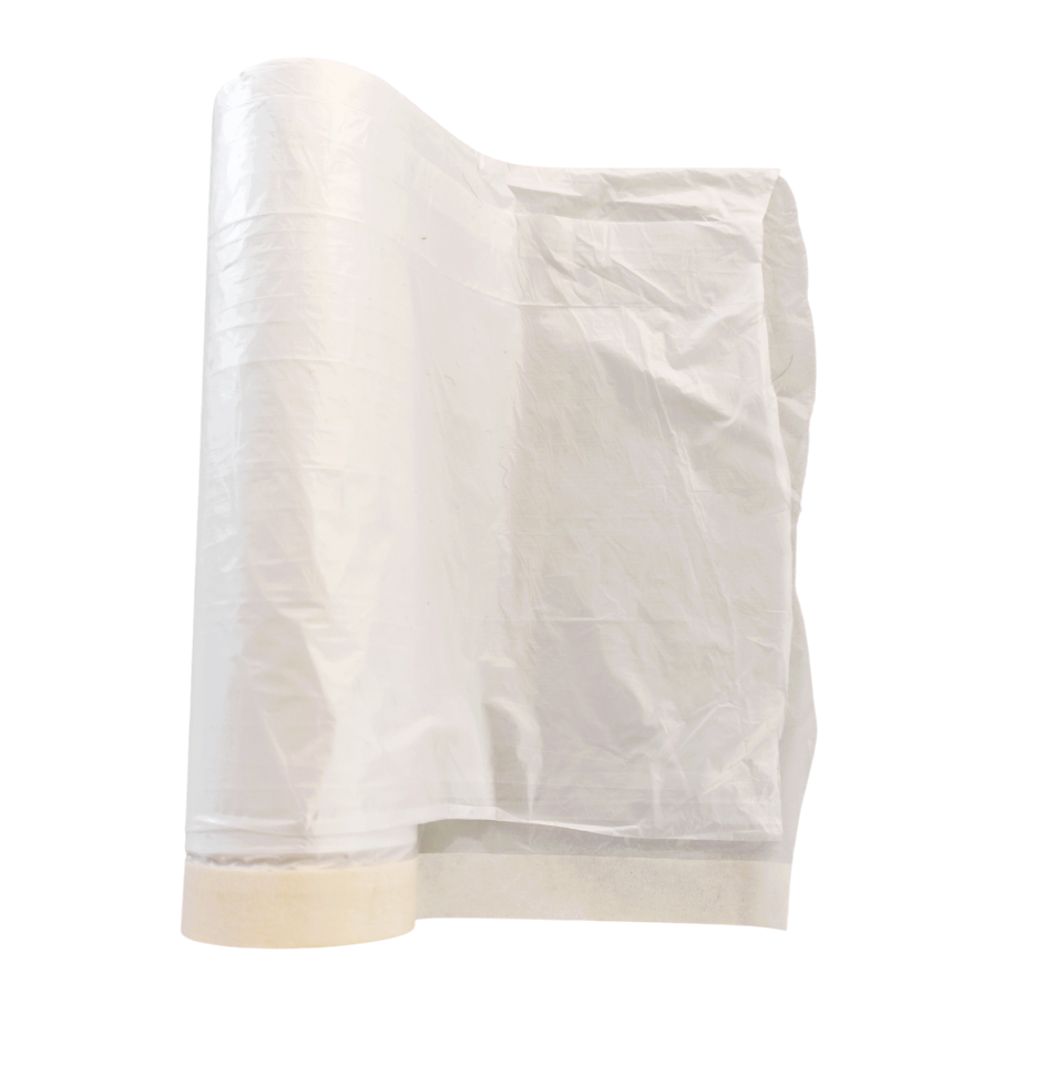 Com fita adesiva para facilitar a proteção de superfícies